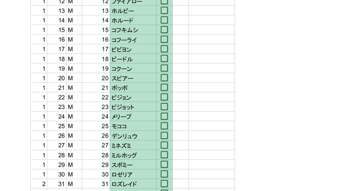使い方としては簡単で、チェックボックスをクリックしてチェックを入れるか、半角の”1″を入力するかのどちらかの操作でポケモン名の表示が変わるようにしてある。