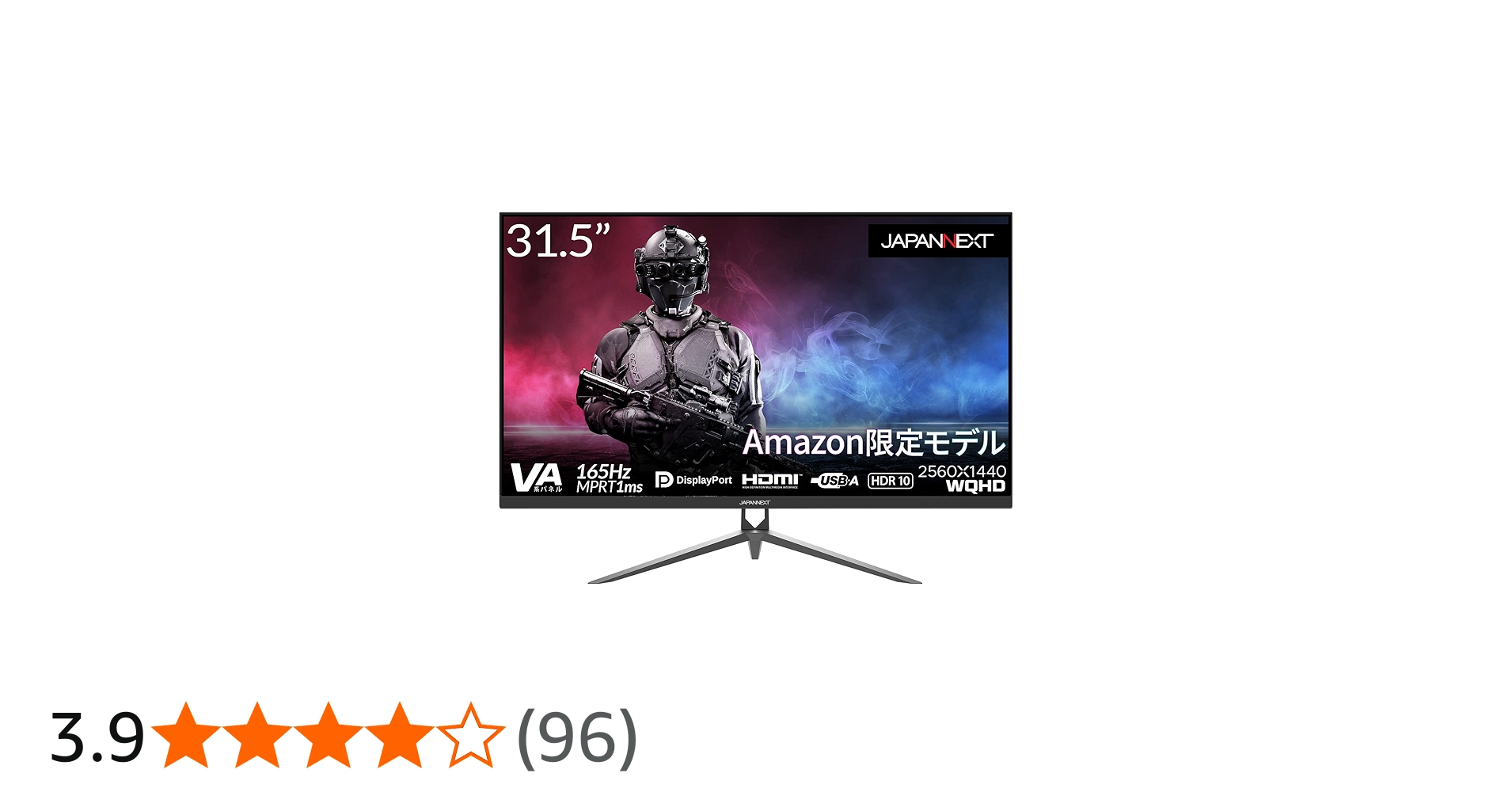 【Amazon.co.jp限定】JapanNext 31.5インチ WQHD解像度(2560x1440)165Hz対応ゲーミングモニター JN-V3150WQHDR165 HDMI DP